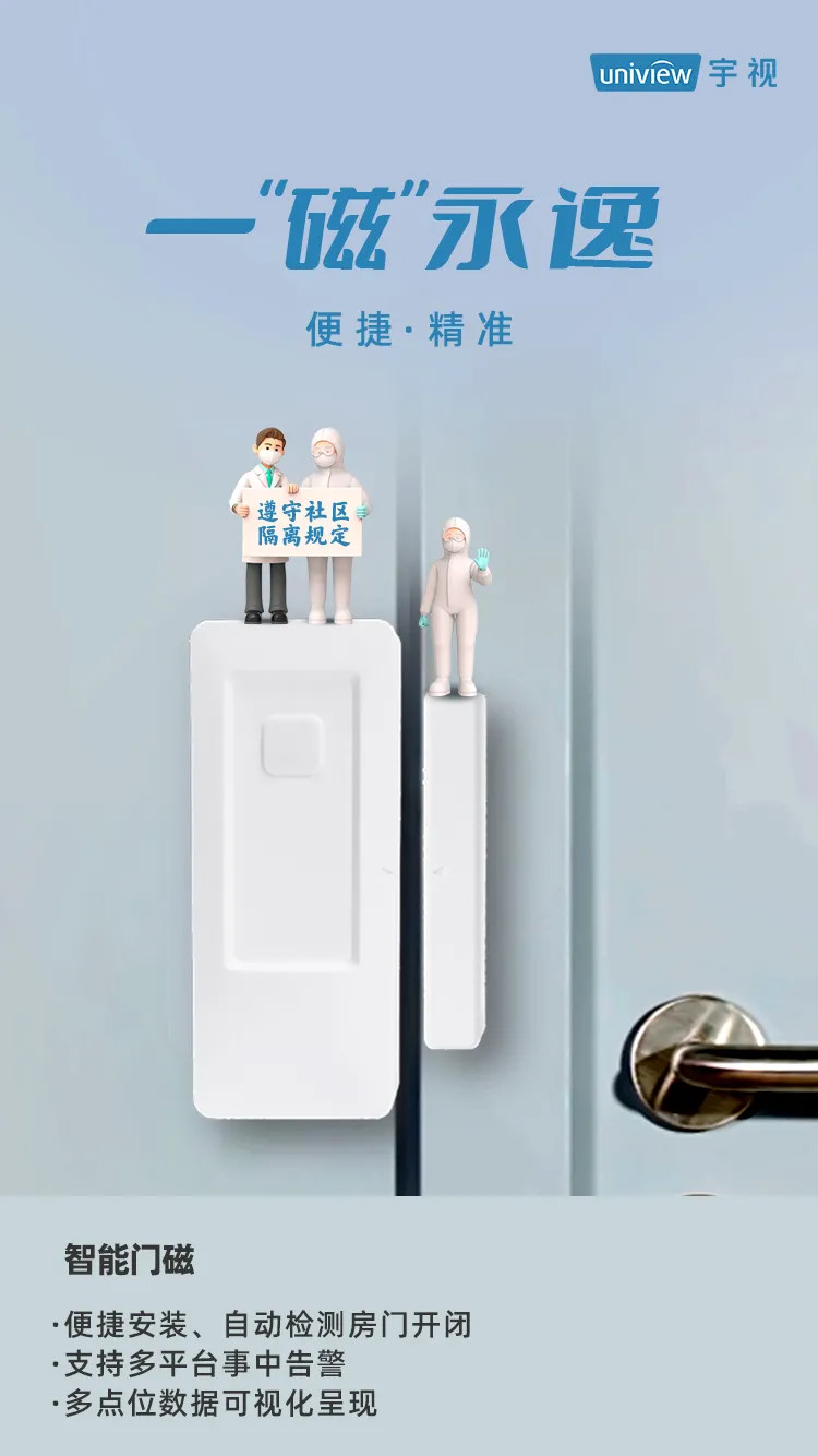 宇视智能门磁,实现酒店/社区/居家防疫隔离人工管理减负提效。