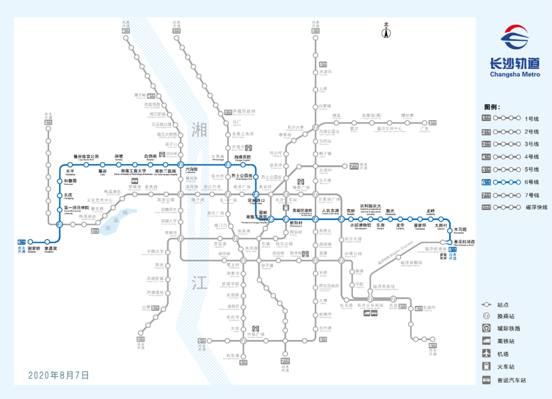 长沙地铁6号线西起谢家桥站,东至黄花机场西站,线路全长48.11公里,共设34座车站;